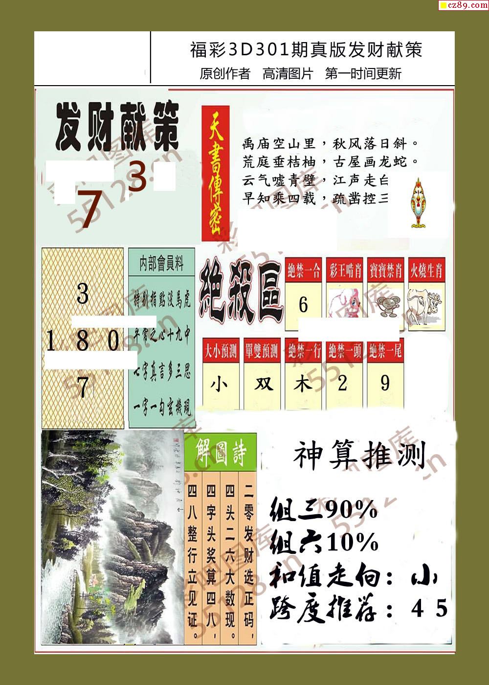 福彩3D2025301期 山上的羊飞鸟胆码图