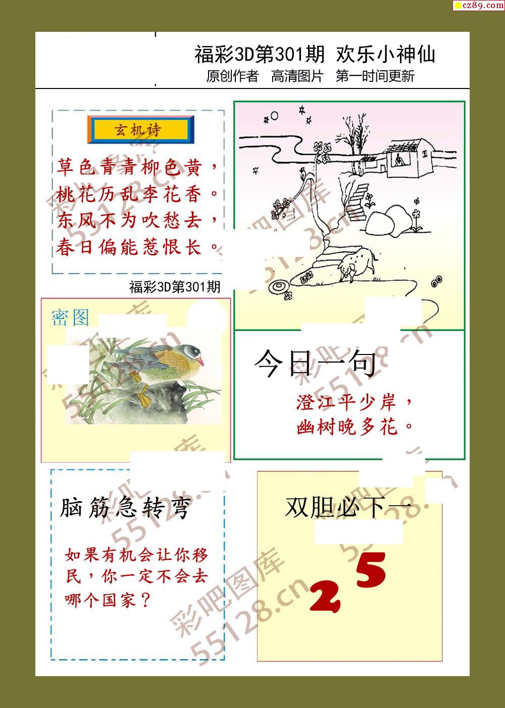福彩3D2025301期 山上的羊飞鸟胆码图