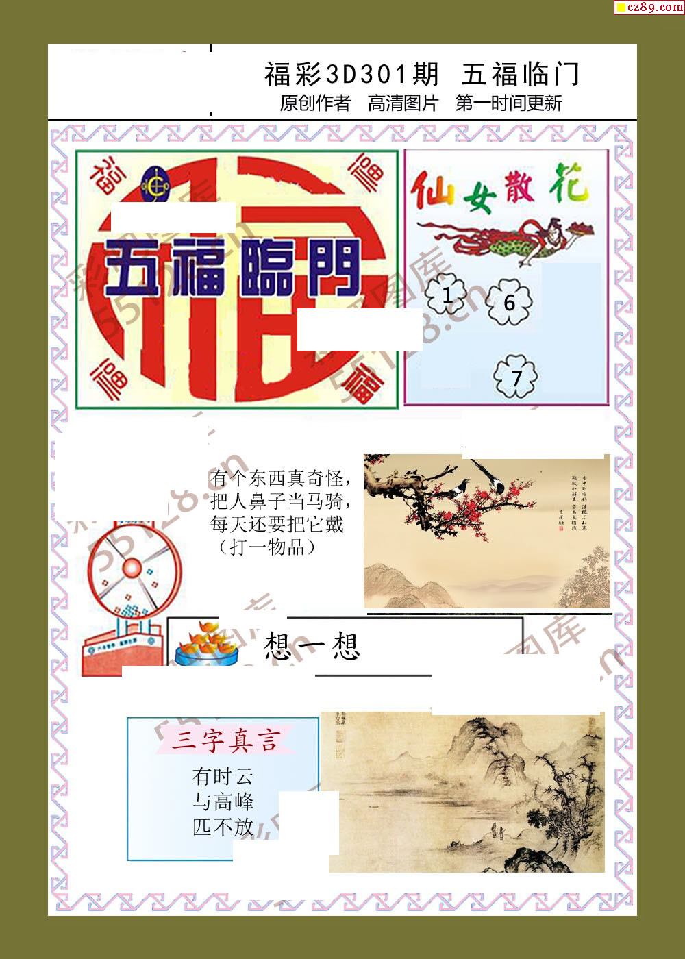 福彩3D2025301期 山上的羊飞鸟胆码图