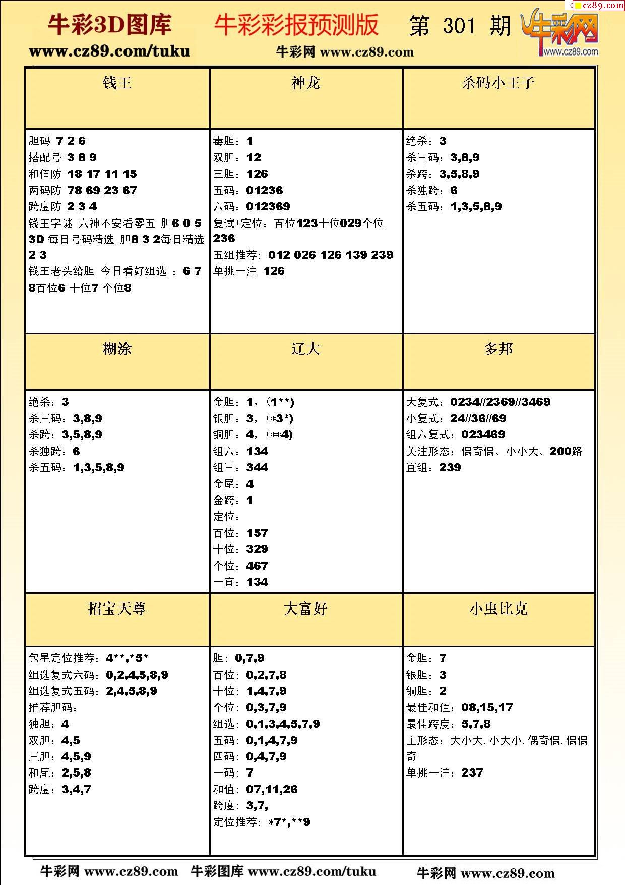 首页 > 福彩3D图谜 > 牛彩版3D预测彩报图25年301期打印版