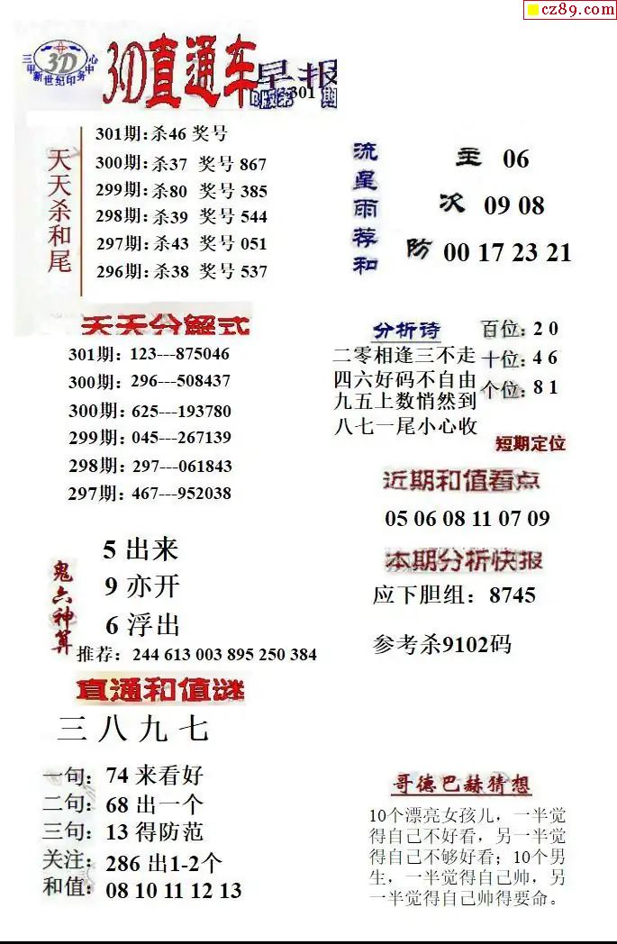 福彩3D2025301期 山上的羊飞鸟胆码图